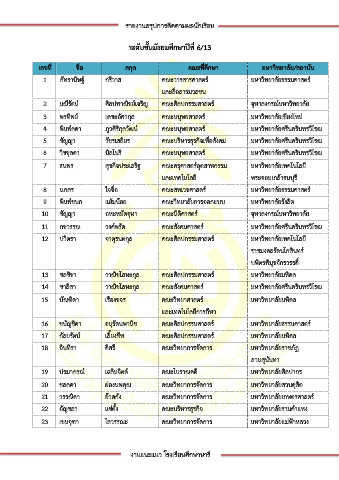 เลขที่ ชื่อ สกุล คณะที่ศึกษา มหาวิทยาลัย/สถาบัน