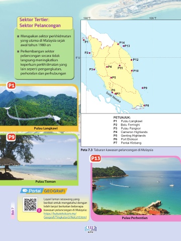 Peta 7.3 Taburan kawasan pelancongan di Malaysia