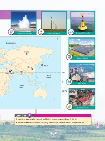 1. Nyatakan tiga sumber semula jadi boleh baharu yang terdapat di dunia.