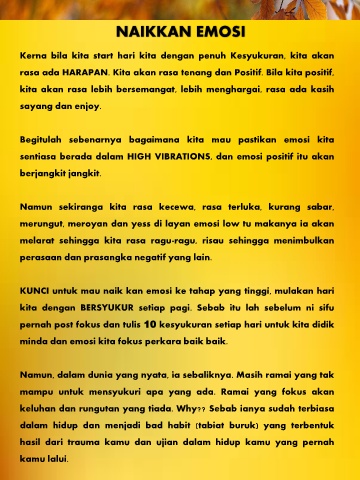 KUNCI untuk mau naik kan emosi ke tahap yang tinggi, mulakan hari