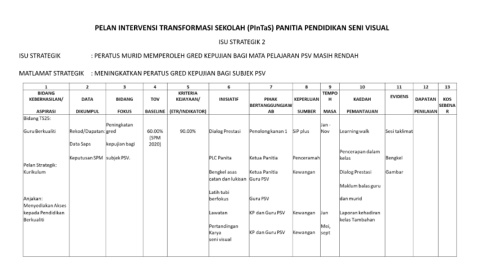 PELAN INTERVENSI TRANSFORMASI SEKOLAH (PInTaS) PANITIA PENDIDIKAN SENI VISUAL