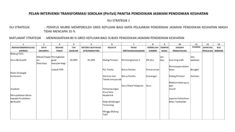 PELAN INTERVENSI TRANSFORMASI SEKOLAH (PInTaS) PANITIA PENDIDIKAN JASMANI PENDIDIKAN KESIHATAN