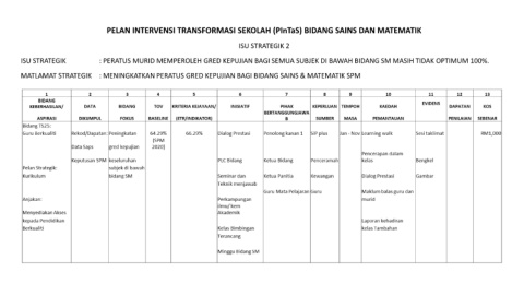 PELAN INTERVENSI TRANSFORMASI SEKOLAH (PInTaS) BIDANG SAINS DAN MATEMATIK