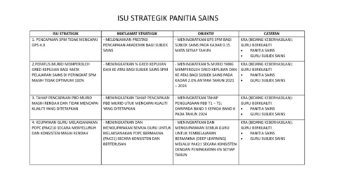 ISU STRATEGIK MATLAMAT STRATEGIK OBJEKTIF CATATAN