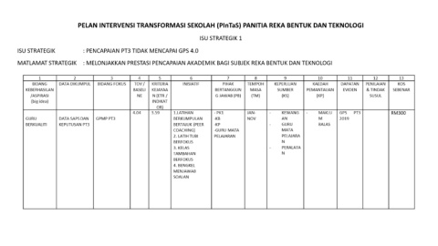 PELAN INTERVENSI TRANSFORMASI SEKOLAH (PInTaS) PANITIA REKA BENTUK DAN TEKNOLOGI