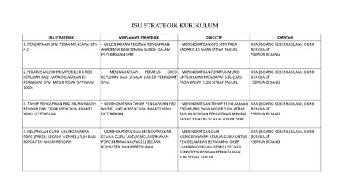 ISU STRATEGIK MATLAMAT STRATEGIK OBJEKTIF CATATAN