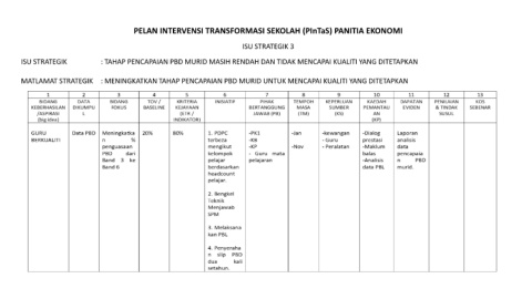 PELAN INTERVENSI TRANSFORMASI SEKOLAH (PInTaS) PANITIA EKONOMI