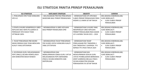 ISU STRATEGIK MATLAMAT STRATEGIK OBJEKTIF CATATAN