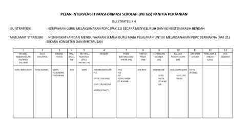 PELAN INTERVENSI TRANSFORMASI SEKOLAH (PInTaS) PANITIA PERTANIAN