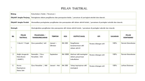 Objektif Jangka Pendek Memastikan peningkatan penglibatan dan pencapaian ahli dalam aktiviti kelab / persatuan di peringkat sekolah dan daerah.