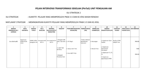 PELAN INTERVENSI TRANSFORMASI SEKOLAH (PInTaS) UNIT PENGAJIAN AM