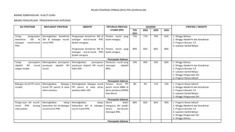 PELAN STRATEGIK OPERASI (PSO) PPKI (KURIKULUM)
