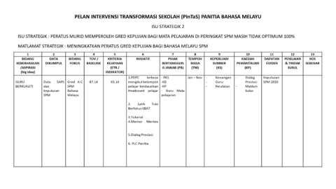 PELAN INTERVENSI TRANSFORMASI SEKOLAH (PInTaS) PANITIA BAHASA MELAYU