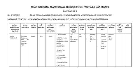 PELAN INTERVENSI TRANSFORMASI SEKOLAH (PInTaS) PANITIA BAHASA MELAYU