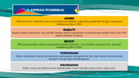 100% enrolmen merentas semua peringkat pendidikan daripada prasekolah hingga menengah