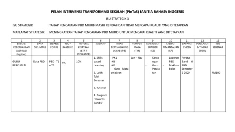 PELAN INTERVENSI TRANSFORMASI SEKOLAH (PInTaS) PANITIA BAHASA INGGERIS