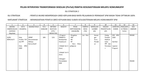 PELAN INTERVENSI TRANSFORMASI SEKOLAH (PInTaS) PANITIA KESUSASTERAAN MELAYU KOMUNIKATIF