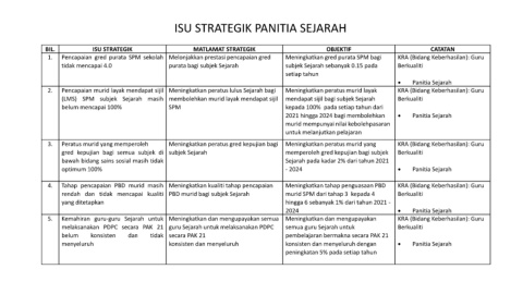 BIL. ISU STRATEGIK MATLAMAT STRATEGIK OBJEKTIF CATATAN