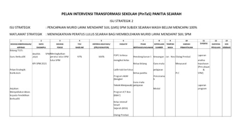 PELAN INTERVENSI TRANSFORMASI SEKOLAH (PInTaS) PANITIA SEJARAH