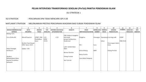 PELAN INTERVENSI TRANSFORMASI SEKOLAH (PInTaS) PANITIA PENDIDIKAN ISLAM ISU STRATEGIK 1 ISU STRATEGIK : PENCAPAIAN SPM TIDAK MENCAPAI GPS 4.00 MATLAMAT STRATEGIK : MELONJAKKAN PRESTASI PENCAPAIAN AKADEMIK BAGI SUBJEK PENDIDIKAN ISLAM