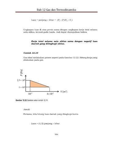 Gas ideal melakukan proses seperti pada Gambar 12.22. Hitung kerja yang