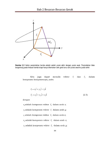 Gambar 2.3 Vektor perpindahan benda adalah selisih posisi akhir dengan posisi awal. Perpindahan tidak