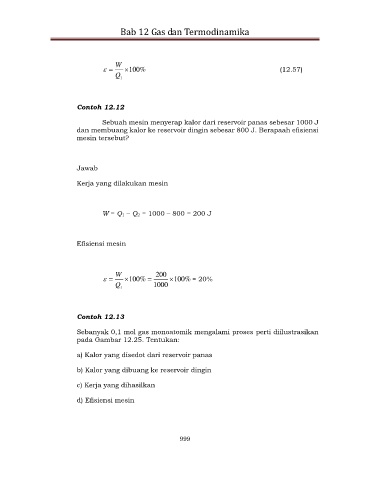 dan membuang kalor ke reservoir dingin sebesar 800 J. Berapaah efisiensi