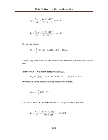 ii) Proses B C adalah isobarik sehingga