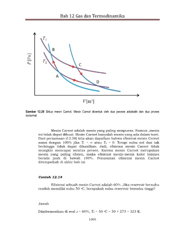 Gambar 12.26 Siklus mesin Carnot. Mesin Carnot dibentuk oleh dua peoses adiabatik dan dua proses
