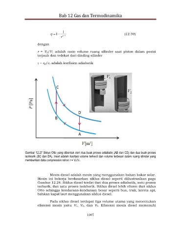 Gambar 12.28. Siklus diesel terdiri dari dua proses adiabatik, satu proses