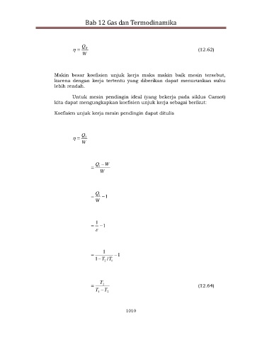 Koefisien unjuk kerja mesin pendingin dapat ditulis