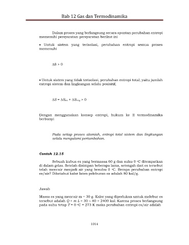 Dalam proses yang berlangsung secara spontan perubahan entropi
