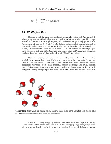 Gambar 12.32 Dalam wujud gas molekul-molekul bergerak bebas dalam ruang. Gaya tarik antar molekul tidak