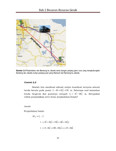 Gambar 2.4 Perpindahan dari Bandung ke Jakarta sama dengan panjang garis lurus yang menghubungkan
