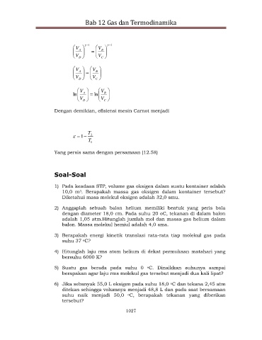 Dengan demikian, efisiensi mesin Carnot menjadi