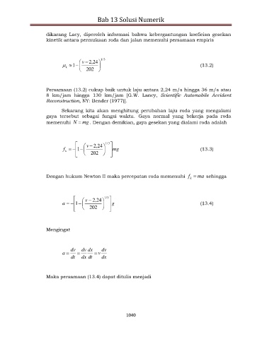 kinetik antara permukaan roda dan jalan memenuhi persamaan empiris