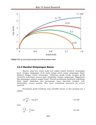 Gambar 13.6 Laju benda pada berbagai nilai koefisien gesekan kinetik.