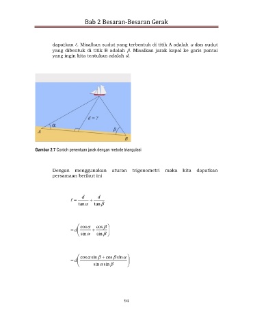 yang dibentuk di titik B adalah . Misalkan jarak kapal ke garis pantai