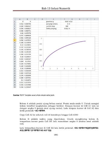 Gambar 13.11 Tampilan excel untuk simulai rantai jatuh.