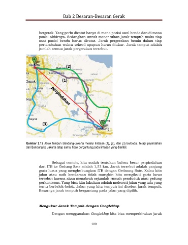 Gambar 2.12 Jarak tempuh Bandung-Jakarta melalui lintasan (1), (2), dan (3) berbeda. Tetapi pepindahan