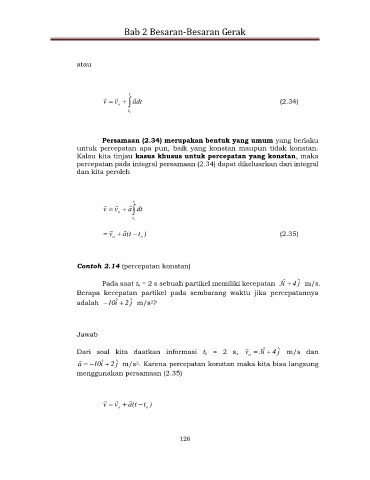 percepatan pada integral persamaan (2.34) dapat dikeluarkan dari integral
