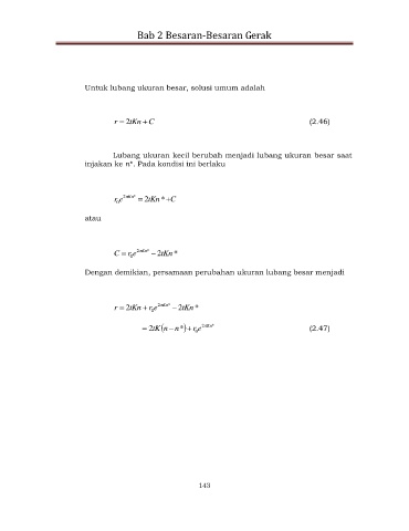 Dengan demikian, persamaan perubahan ukuran lubang besar menjadi