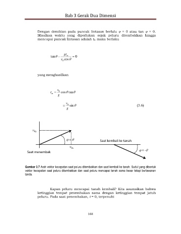 Dengan demikian pada puncak lintasan berlalu = 0 atau tan = 0.