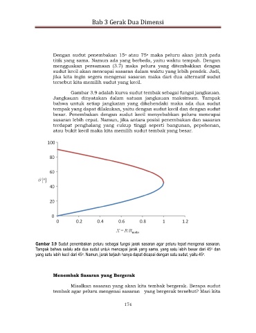 Gambar 3.9 Sudut penembakan peluru sebagai fungsi jarak sasaran agar peluru tepat mengenai sasaran.