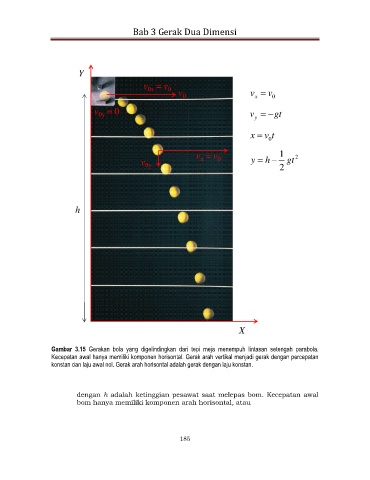 Gambar 3.15 Gerakan bola yang digelindingkan dari tepi meja menempuh lintasan setengah parabola.