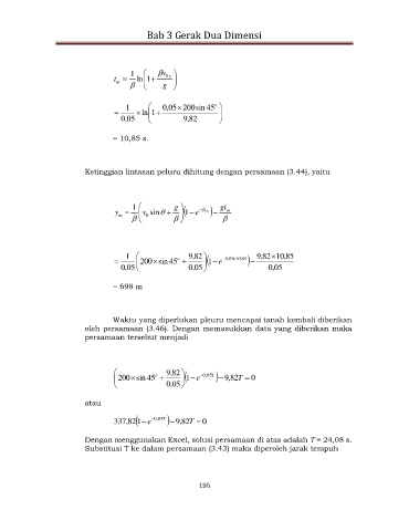 Substitusi T ke dalam persamaan (3.43) maka diperoleh jarak tempuh