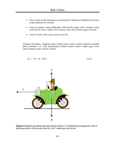 Dengan demikian, diagram gaya bebas pada sistem mobil mainan tampak