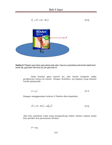 Gambar 4.7 Diagram gaya bebas yang bekerja pada balok. Gaya luar yang bekerja pada benda adalah berat