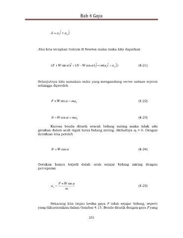 (F W sin )i (N W cos ) j m ( i a y ˆ ) j (4.21)