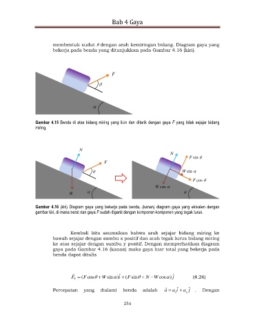 Gambar 4.15 Benda di atas bidang miring yang licin dan ditarik dengan gaya F yang tidak sejajar bidang